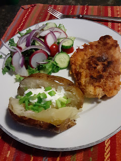 Lamb cheeseburgers with 'fries'. I made a bit of the sauce that I made for the lamb chops and put that on the burgers as they cooked. It was delicious.